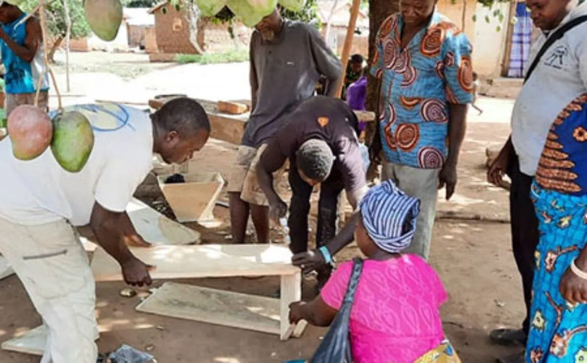 Désormais c’est une délégation des apiculteurs locaux, formés il y a 4 ans à Agou, là où se situe la ferme de spiruline de notre partenaire Ecospiruline, qui s’est déplacée pour transmettre son savoir faire notamment sur la fabrication des ruches.