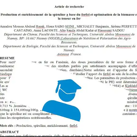 Production et enrichissement de la spiruline a base du ferfol et optimisation de la biomasse et la teneur en fer” écrit par Amadou Moussa Abdoul Razak est prêt à être publié.